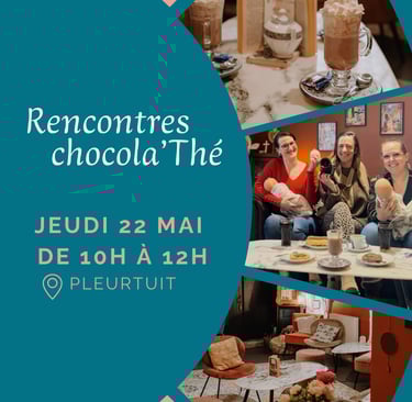 ✨ Rejoins-nous aux Rencontres Chocola'thé : un instant doux et gourmand, rien que pour toi, future ou jeune maman, avec ou sans bébé, avec ou sans co-parent.